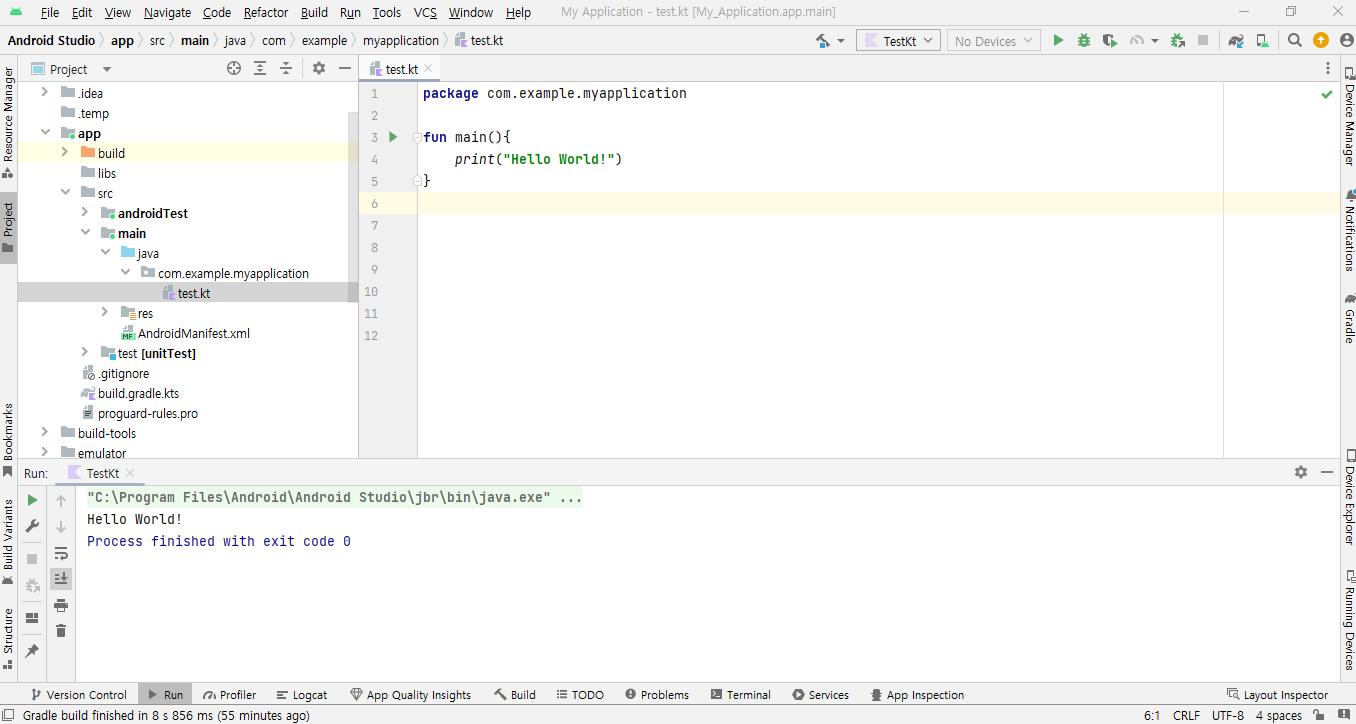 파일를 찾아 그 안에서 NEW- Kotin 클릭- 파일명치고 .kr 후에 밑에 양식을 보면 폴더로 더블클릭한다.